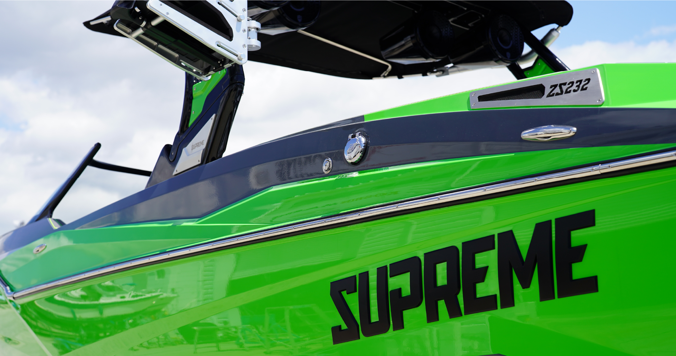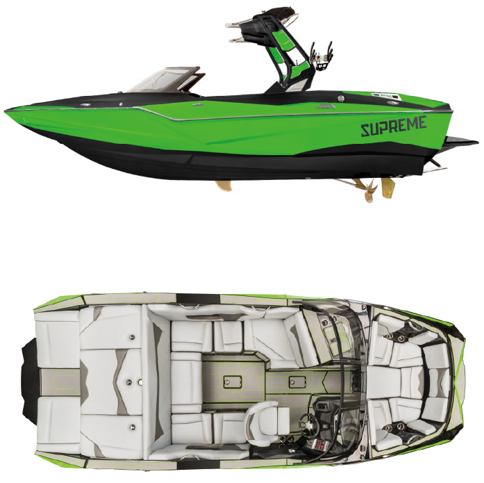 シュプリームボート(SUPREME BOAT)は、CENTURION BOATのセカンドブランドにあたり、機能性能はそのままに、コストパフォーマンスに優れたウェイクサーフィン専用ボートです。